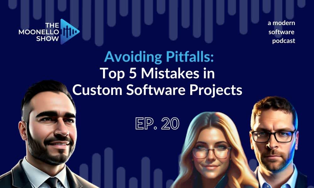 For more detailed insights on these topics, be sure to listen to episode 20 of our podcast, The Moonello Show, “Avoiding Pitfalls: Top 5 Mistakes in Custom Software Projects” This is where we go more in-depth into the 5 common mistakes in custom software projects and have some fun while exploring practical solutions to avoid them.