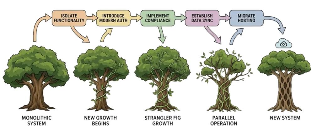 The Strangler Fig pattern—incrementally replacing specific functionality of a legacy system with new applications/services—is widely regarded as the lowest-risk modernization strategy. In practice, however, this approach introduces a specific failure mode: the "Permanent Hybrid" state. This occurs when a migration project stalls after the easy, peripheral features are moved, leaving the core business logic trapped in the legacy environment indefinitely.